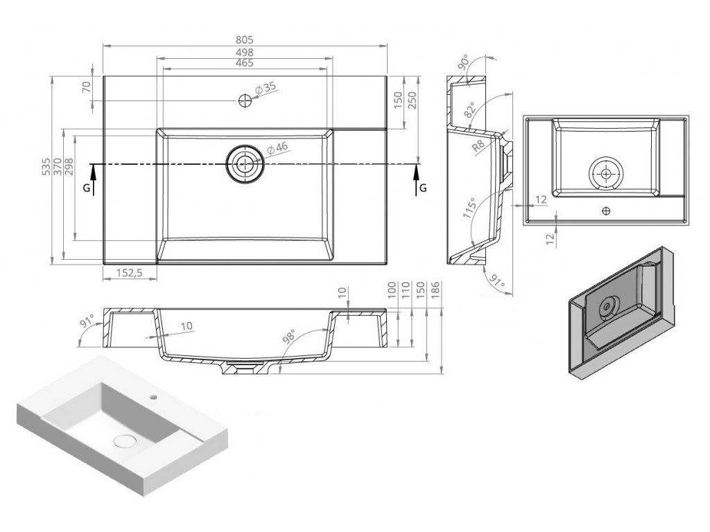 | Tvar umyvadla: | obdélník |