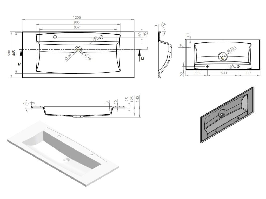 Vayer Pavo 120 zápustné dvojumyvadlo z litého mramoru, VAY-PAV
