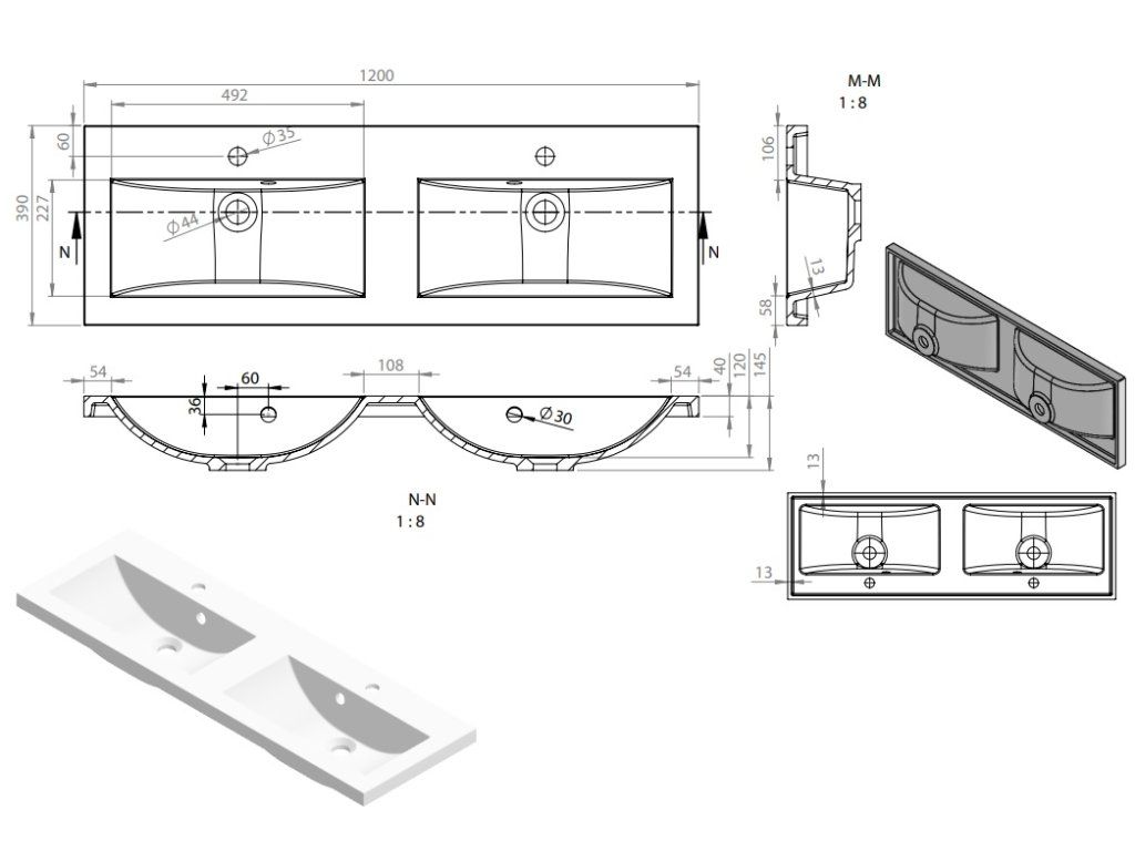 | Šířka umyvadla: | 100cm a více |