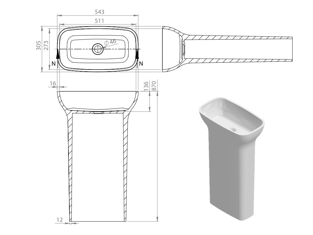 - veškeré technické specifikace naleznete v nákresu umyvadla