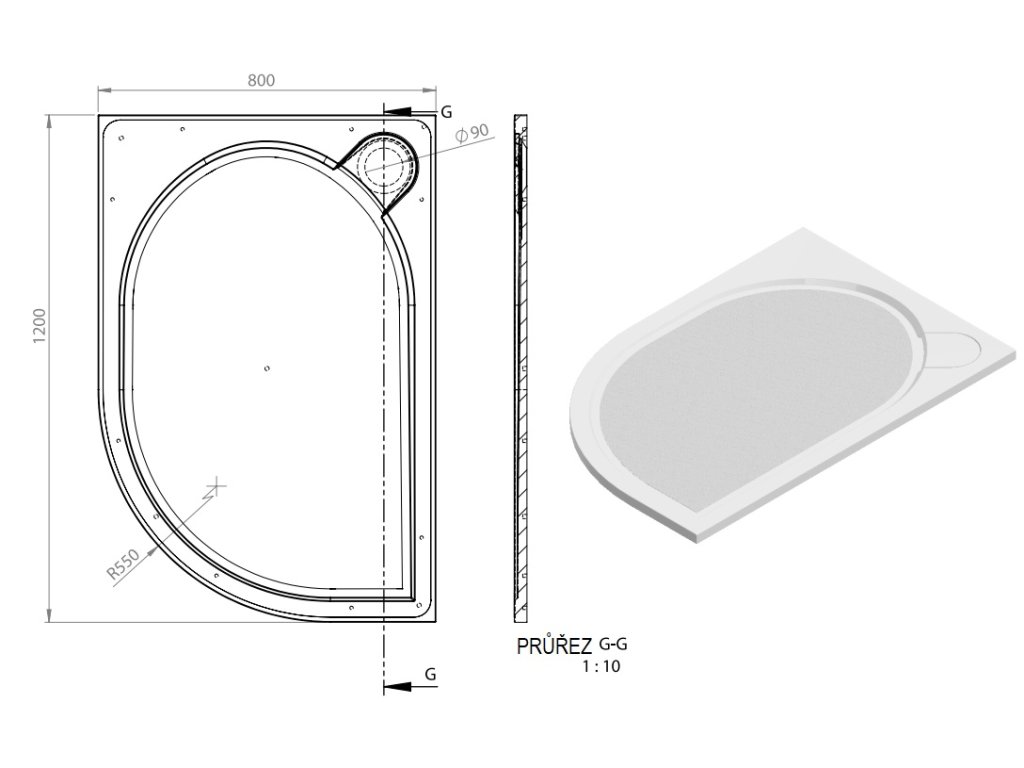 Vayer Virgo asymetrická sprchová vanička, litý mramor Orientace: Levá, Rozměr vaničky: 100x80cm, 12174_LEV3