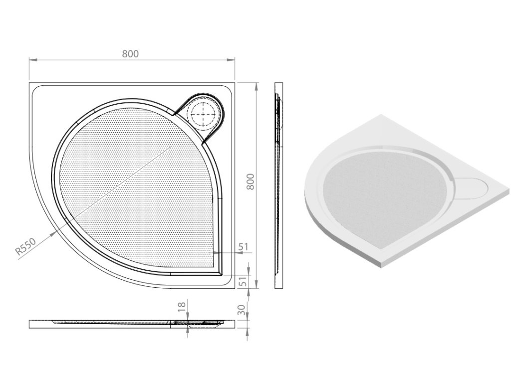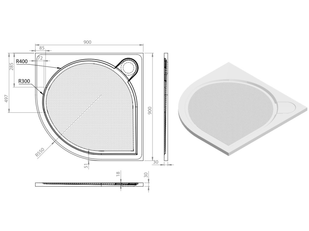 Specifikace čtvrtkruhové sprchové vaničky Virgo