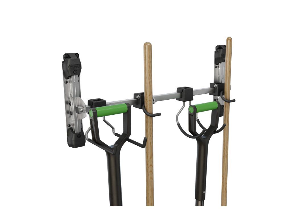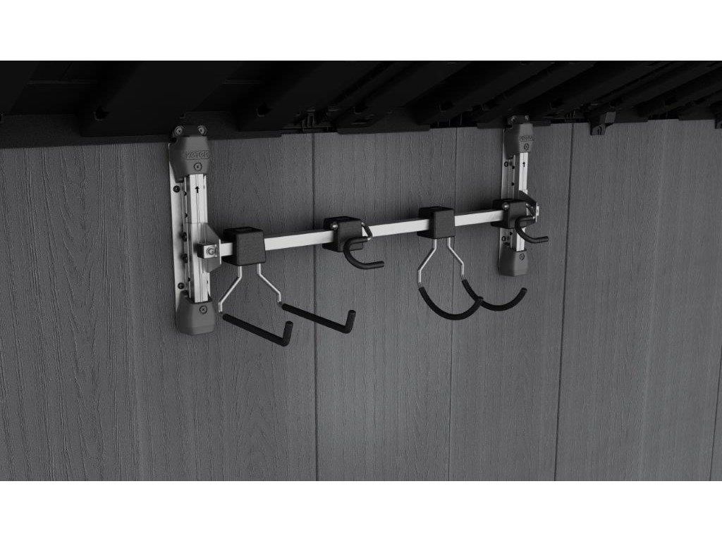 Usnadněte si skladování zahradního náčiní s dlouhou násadou, jako jsou vidle, lopaty nebo třeba hrábě. Pořiďte si multifunkční věšák Multi Purpose Wall Hanger od značky Keter. Namontujete ho do jakéhokoliv zahradního domku Keter (kromě domků Factor) a zavěsíte na něj zahradní potřeby. Jeden hák unese až 9 kg váhy. Celková nosnost věšáku je 36 kg.