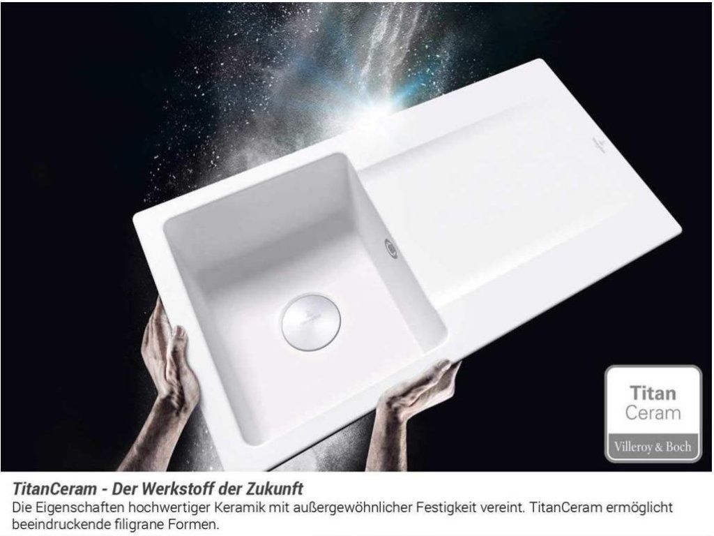 Dřez je vyroben z materiálu Titan- Ceram - jedná o tzv. "materiál budoucnosti". Vlastnosti vysoce kvalitní keramiky v kombinaci s výjimečnou pevností. Titan- Ceram umožňuje tvořit jemné, křehké tvary, kterou jsou však velmi pevné!