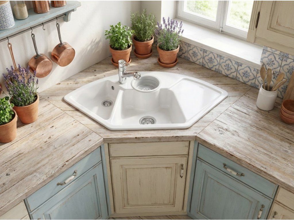 - bílý keramický rohový dřez