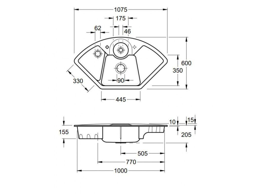 Klíčové vlastnosti kuchyňského dřezu VILLEROY & BOCH SOLO CORNER 1075.20R ( Solo Corner sink 670801 )