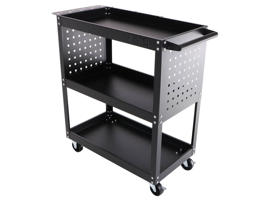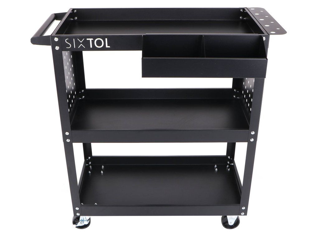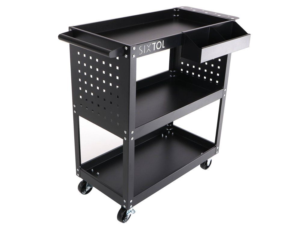 Udržujte si pořádek v dílně a mějte nářadí vždy po ruce. Dílenský vozík Sixtol MECHANIC TROLLEY ROGER nabízí 3 prostorné police, boční perforované stěny a praktický úložný box – ideální pomocník do garáže i servisu.