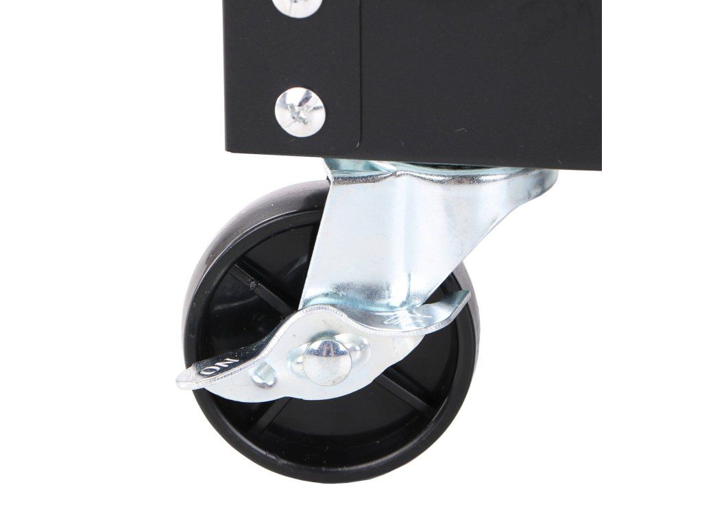 Perforované boční panely umožňují snadné zavěšení dalších pomůcek nebo držáků. Díky otočným kolečkům a madlu se s vozíkem snadno manipuluje i v omezeném prostoru. Dvě kola jsou navíc vybavena brzdou pro zajištění stability při práci.