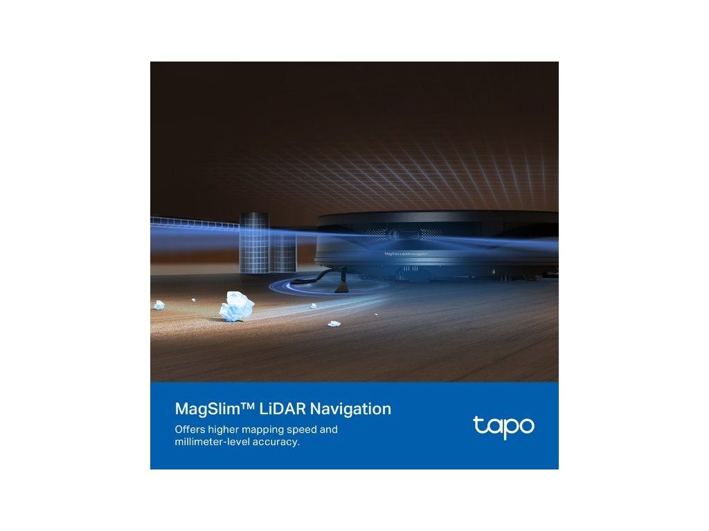 Vysavač TP-Link je vybavený inteligentním navigačním systémem MagSlim™ LiDAR, s jehož pomocí dokáže během několika minut zmapovat celou domácnost. Rozpozná a zafixuje také zdi a různé překážky. Díky 4 lokálně uloženým vícepodlažním mapám rychleji rozpoznává různá podlaží. Naskenovanou mapu můžete uzamknout, abyste vysavači zabránili v případných změnách.