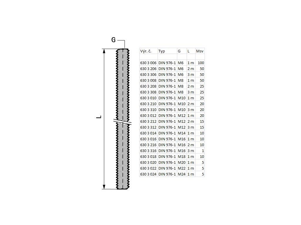 WALRAVEN BIS závitová tyč M10x1m, ocel, 6303010
