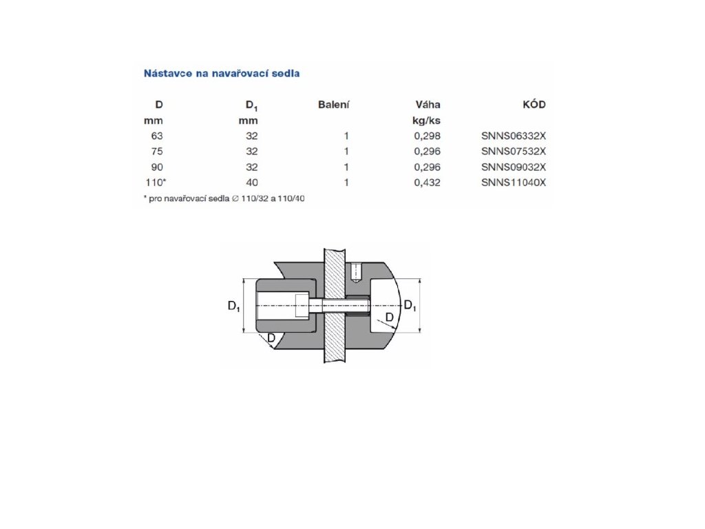 Nástavce na navařovací sedla pro polyfúzní svařování.