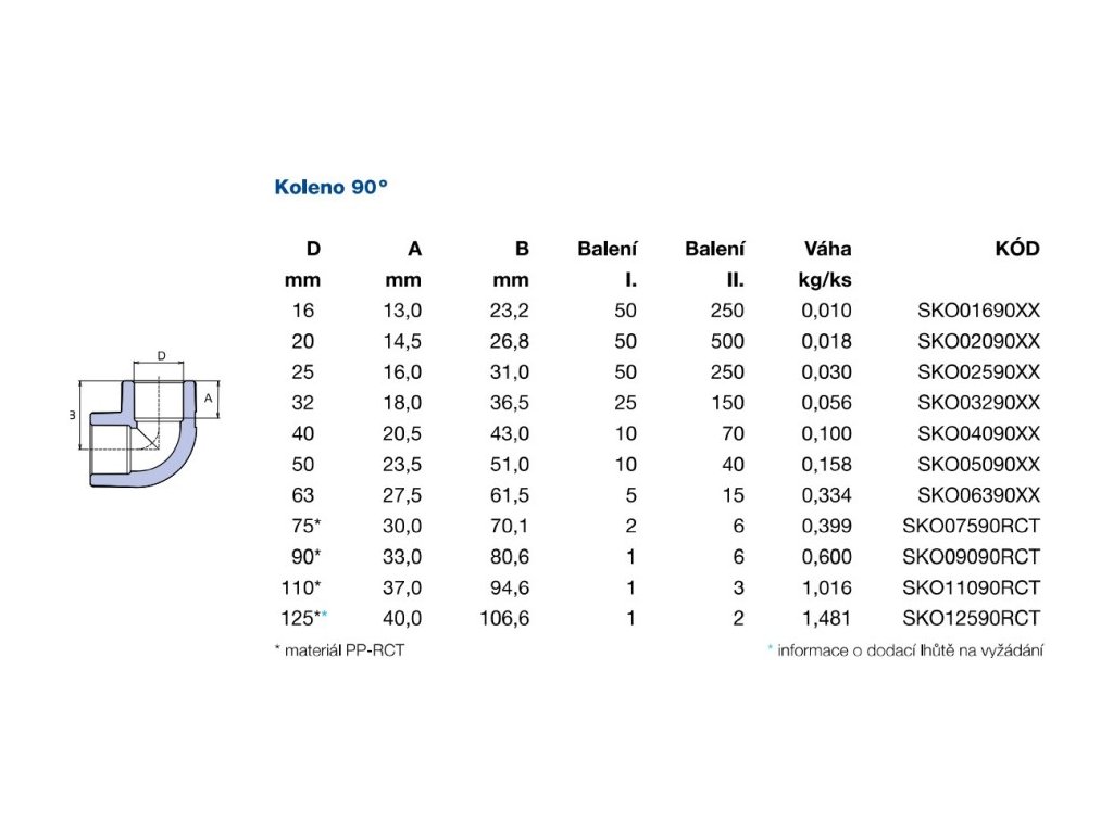WAVIN EKOPLASTIK PPR koleno 50mm, 90°, svařovací, voda, PP-RCT, SKO05090RCT