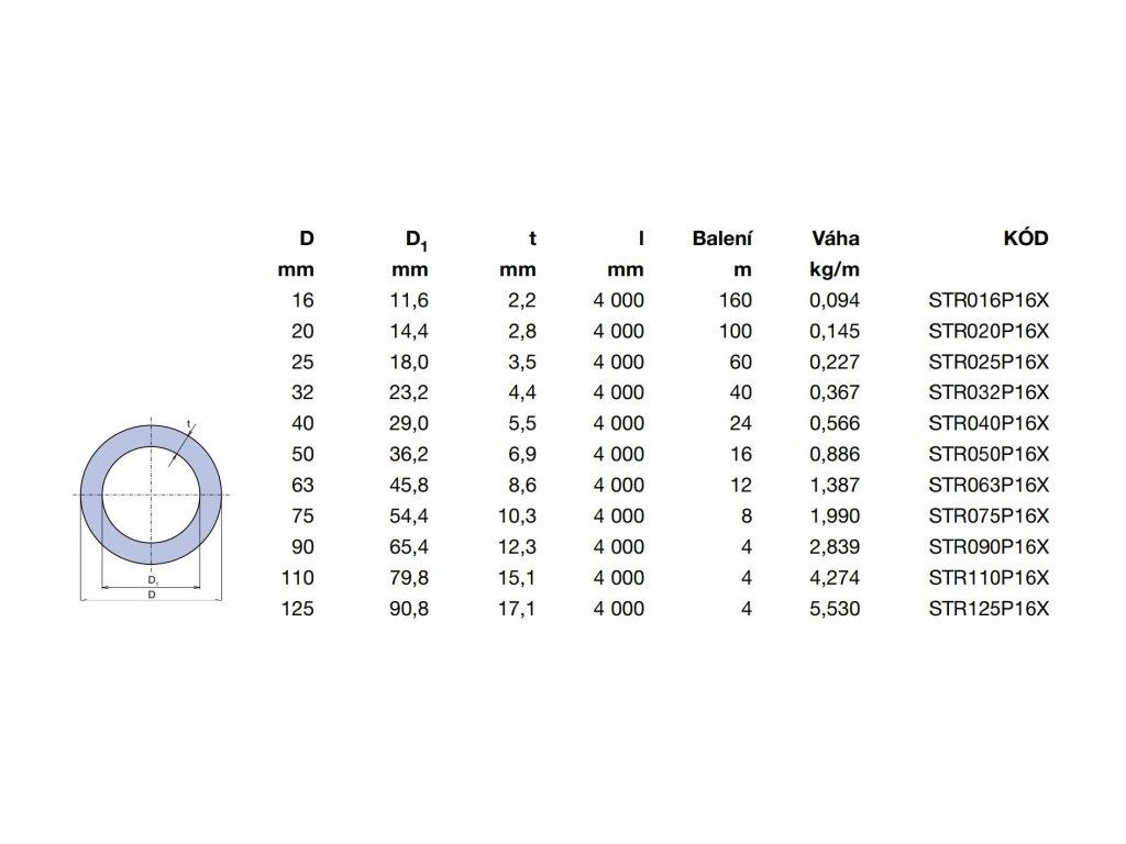- Tloušťka stěny: 4,4 mm