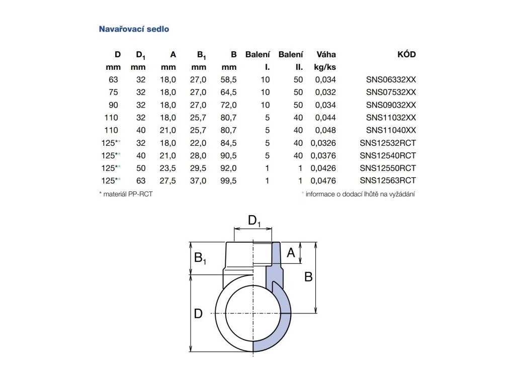 WAVIN EKOPLASTIK PPR sedlo 110/40mm, navařovací, voda, PP-RCT, SNS11040RCT
