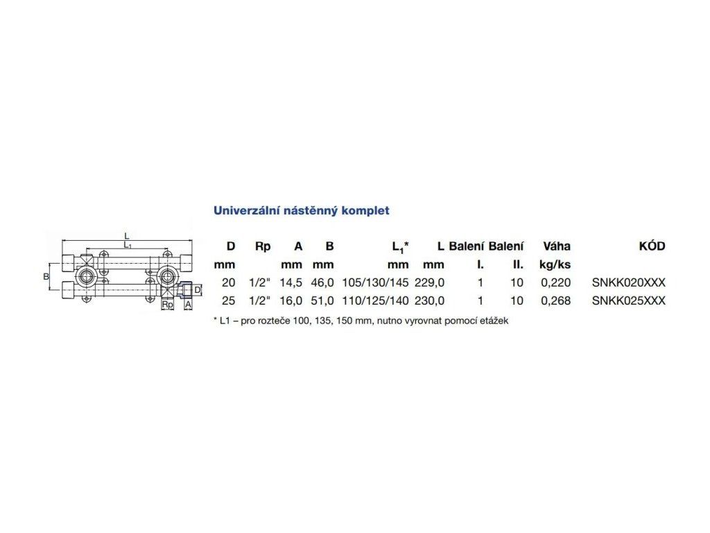 WAVIN EKOPLASTIK PPR univerzální nástěnný komplet 20mm, 1/2", svařovací, voda, PP-R, SNKK020RCT