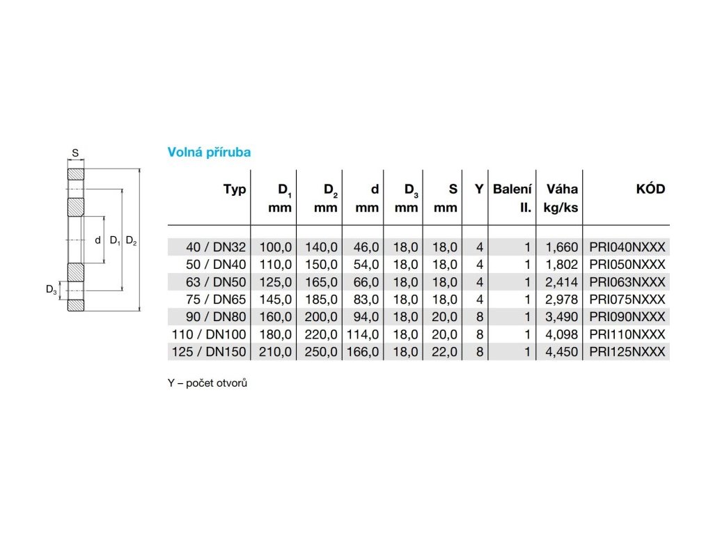 WAVIN EKOPLASTIK příruba 63mm/DN50, volná, kov, PRI063NXXX