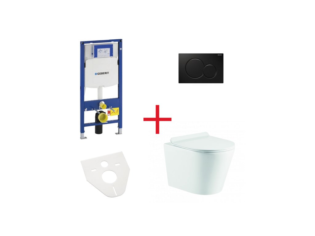 WC set OVALE BASSO RIMLESS: závěsné WC se sedátkem, duofix, podložka, tlačítko černé, OLKLT053ER006