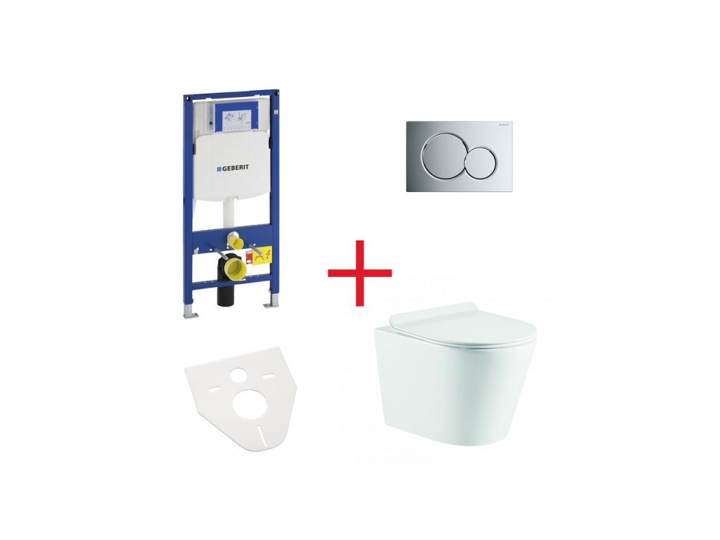 WC set OVALE BASSO RIMLESS: závěsné WC se sedátkem, duofix, podložka, tlačítko chrom lesk, OLKLT053ER007