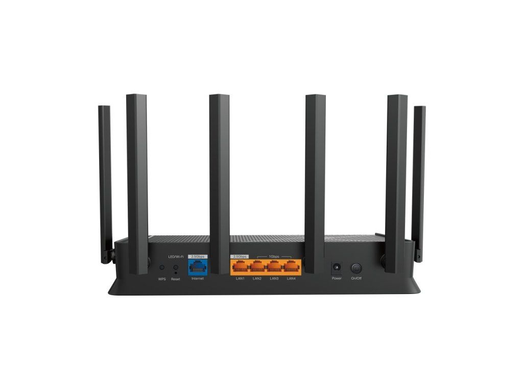 - Ethernet porty: 1x 2,5 Gbps WAN, 1x 2,5 Gbps LAN, 3x 1 Gbps LAN