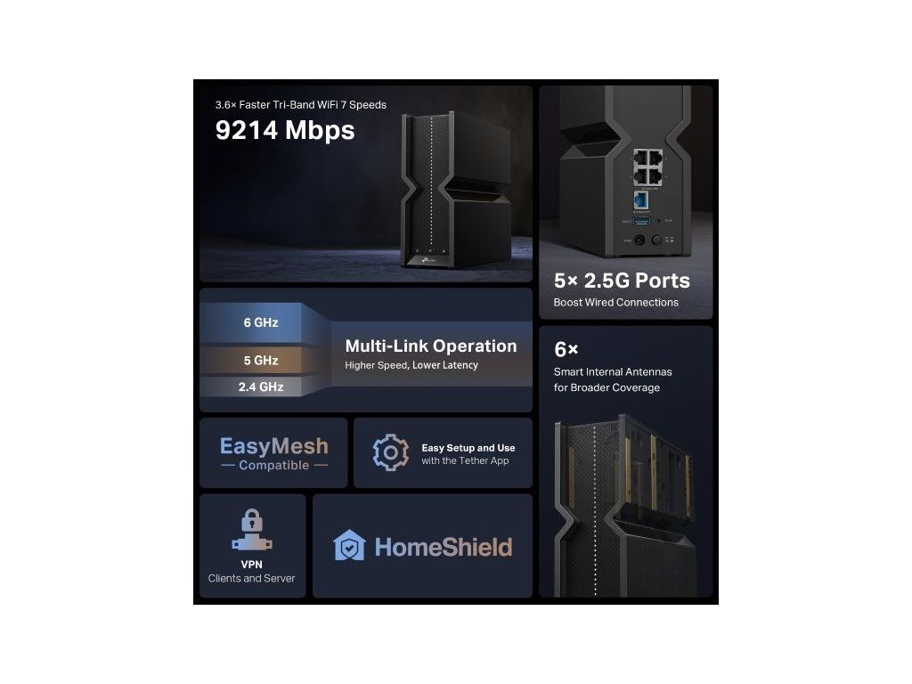 - Rychlé třípásmové připojení s celkovou rychlostí až 9 214 Mbps
