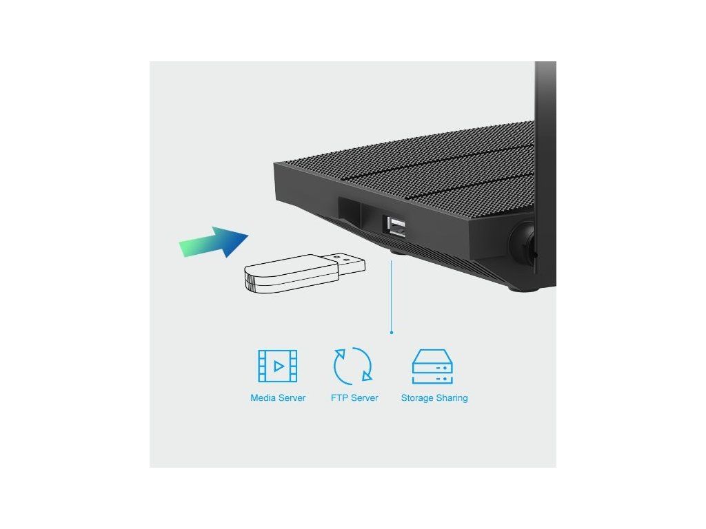 - Integrovaný USB 2.0 port usnadní sdílení souborů v síti nebo tvorbu soukromého cloudového úložiště