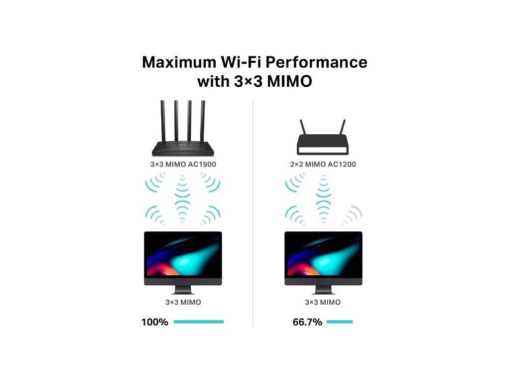 Archer C80 je dual-band domácí router, který podporuje standard 802.11ac Wave2. Se zařízeními, která podporují technologii 3x3 MIMO lze dosáhnout až o 1/3 vyšších rychlostí oproti technologii 2x2 MIMO.