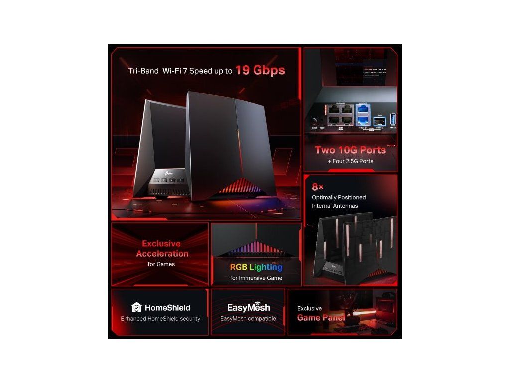 WiFi router TP-Link Archer GE800 BE19000, WiFi 7, 1x 10G WAN, 1x 10GLAN, 4x 2,5GLAN, USB, 2,4/5/6GHz, EasyMesh, 52449866