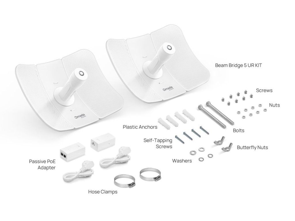 TP-Link Beam Bridge 5 UR KIT je profesionální venkovní bezdrátový most s dosahem až 15 km, navržený pro stabilní point to point propojení vzdálených lokalit. Díky směrovým anténám se ziskem 23 dBi a podpoře Omada SDN zajistí spolehlivý přenos dat i v náročných podmínkách.