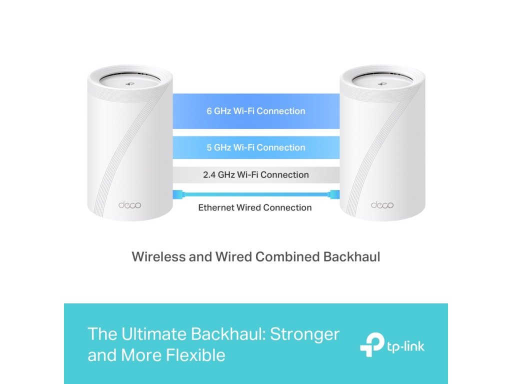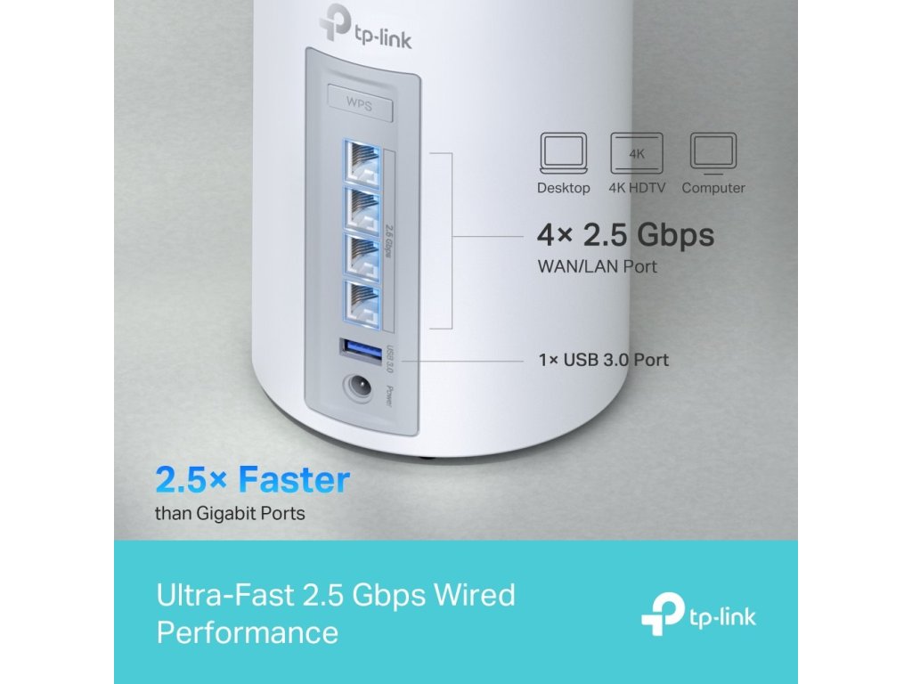 - Ethernet porty: 4x 2,5 Gbps (na jednu jednotku Deco, podporuje WAN/LAN uto-sensing)