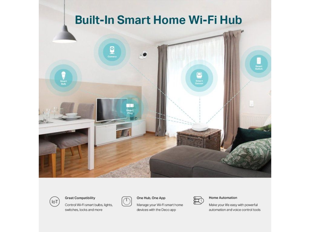 WiFi router TP-Link Deco je řešení Wi-Fi sítě pro celý dům, které má nejkomplexnější zabezpečení. Poskytuje rychlý nepřerušovaný Wi-Fi signál pro každou místnost díky tomu, že využije výkon jendé samostatné jednotky AC1300 pro souvislé pokrytí plochy až 420 m2. Nastavení Deco je snadné a systém může růst spolu s tím, jak budete svou domácnost vybavovat dalšími zařízeními. A na systém Deco se vztahuje v daném oboru jedinečná doživotní nepřetržitá podpora.Wi-Fi pro celý dům, bezpečnost pro celý dům