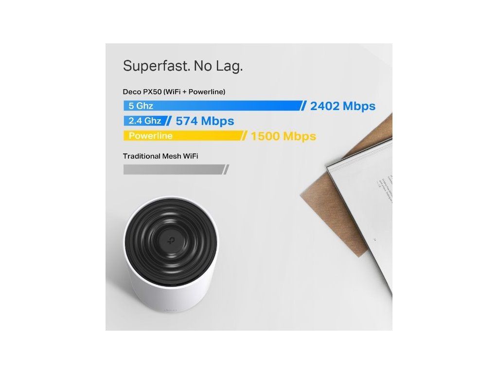 Jednotka Deco PX50 (2-pack) od značky TP-Link pokryje až 400 m². Kombinace dvoupásmové WiFi 6 a G.hn Powerline usnadňuje přenos dat mezi jednotkami Deco. Pokud bydlíte v domácnosti se silnými stěnami, vyřeší jednotky Deco váš problém s narušením signálu WiFi. Standard G.hn nové generace se postará o to, abyste měli připojení i za kovem vyztuženými stěnami.