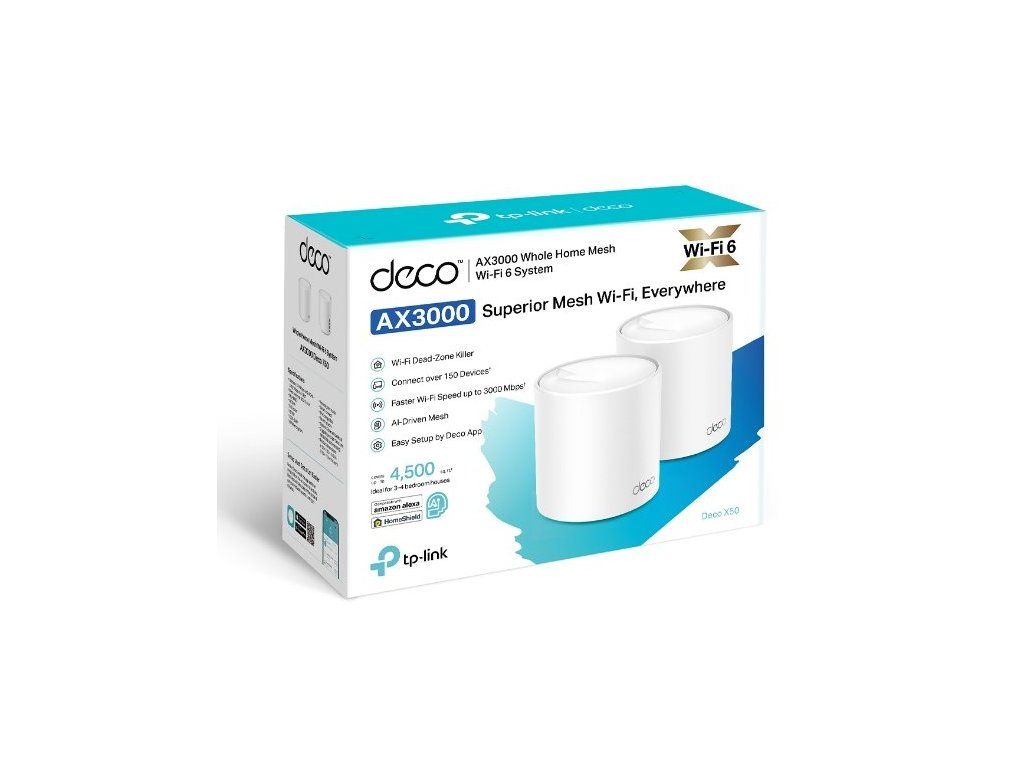 WiFi router TP-Link Deco X50(2-pack) AX3000, WiFi 6, 3x GLAN, / 574Mbps 2,4GHz/ 2402Mbps 5GHz, 52449737