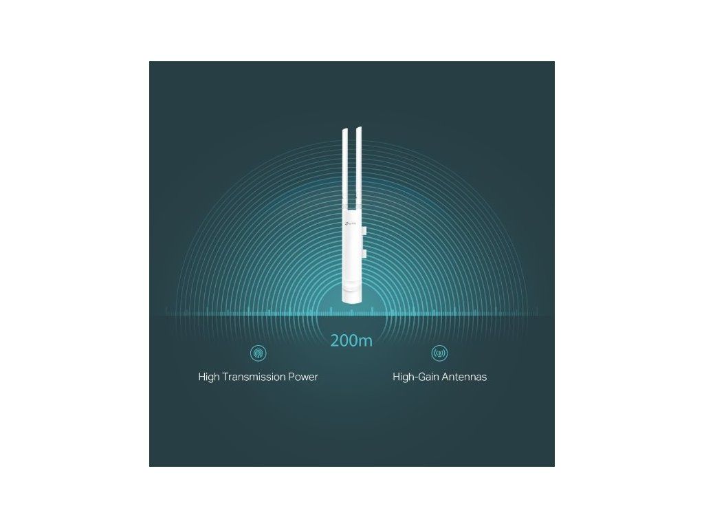 Přístupový bod má velký přenosový výkon a je vybavený 2 všesměrovými anténami s vysokým ziskem. Zajistí vám velmi stabilní pokrytí s dlouhým dosahem – až 200 m. Rozsah se může v praxi lišit podle prostředí, přijímacím zařízení a dalších podobných podmínek.