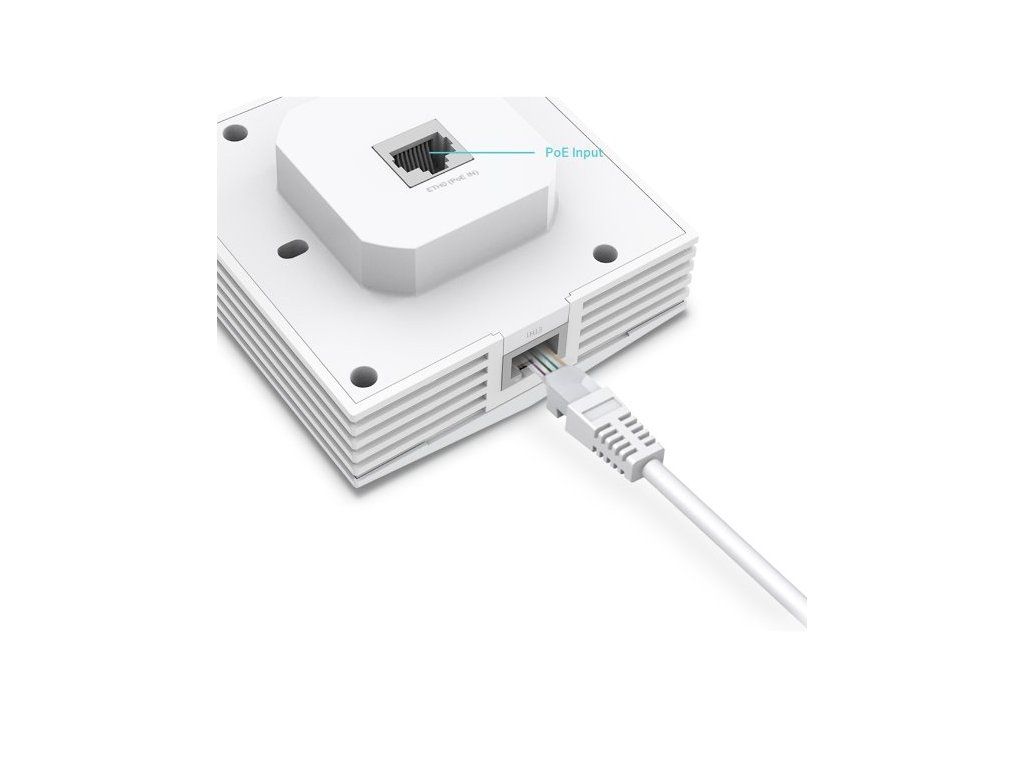 Access point TP-Link EAP650-wall podporuje PoE napájení dle specifikace 802.3af/at, k čemuž poslouží GbE konektor RJ-45 na zadní straně zařízení. Technologie Power over Ethernet představuje vysoce praktickou funkci napájení i přenosu dat pomocí 1 síťového kabelu, proto vám hravě vyřeší obtíže při instalaci zařízení ve velice náročných prostředích, neboť ušetří námahu, náklady pro připojování dodatečných napájecích kabelů i starosti s nedostatkem elektrických zásuvek.
