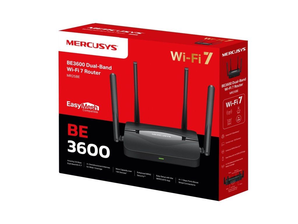 WiFi router TP-Link MERCUSYS MR25BE BE3600 WiFi 7, 3x GLAN, 1x GWAN, 2,4/5GHz, EasyMesh, 52449894