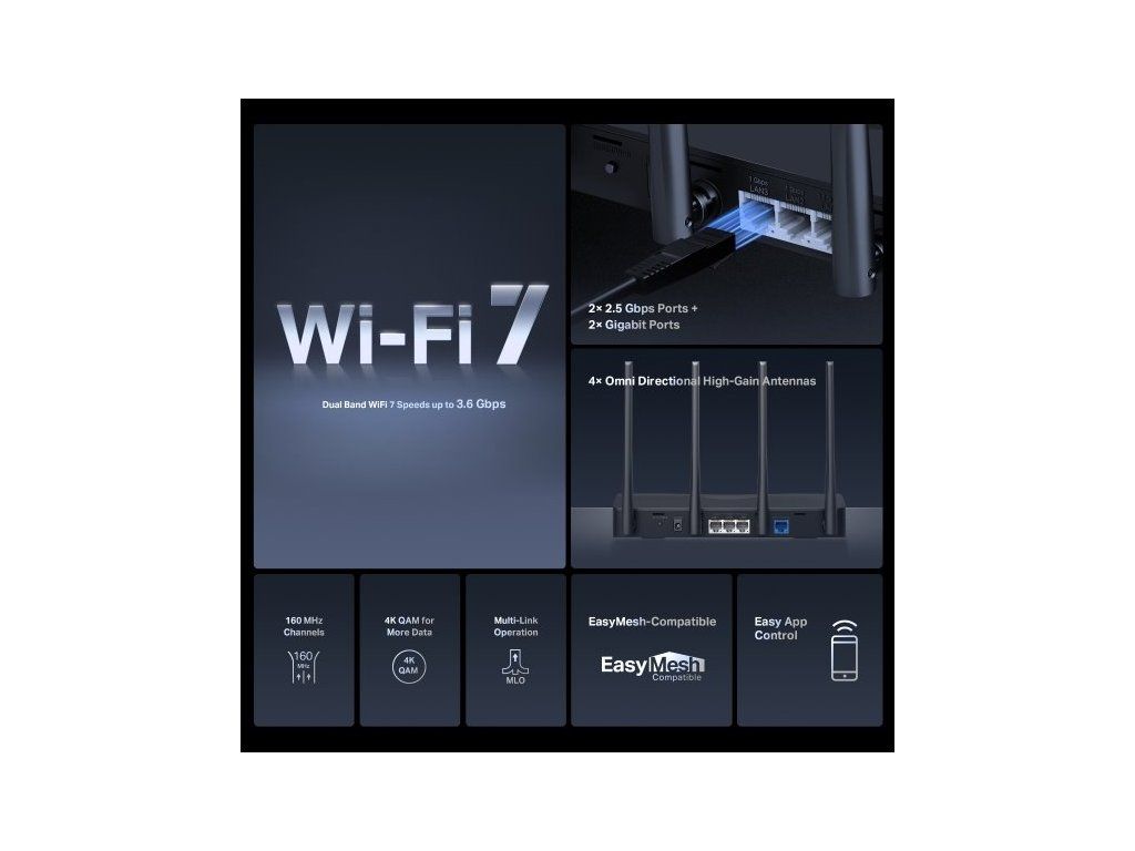 - Bleskově rychlé třípásmové připojení WiFi 7 – celková rychlost až 3,6 Gb/s