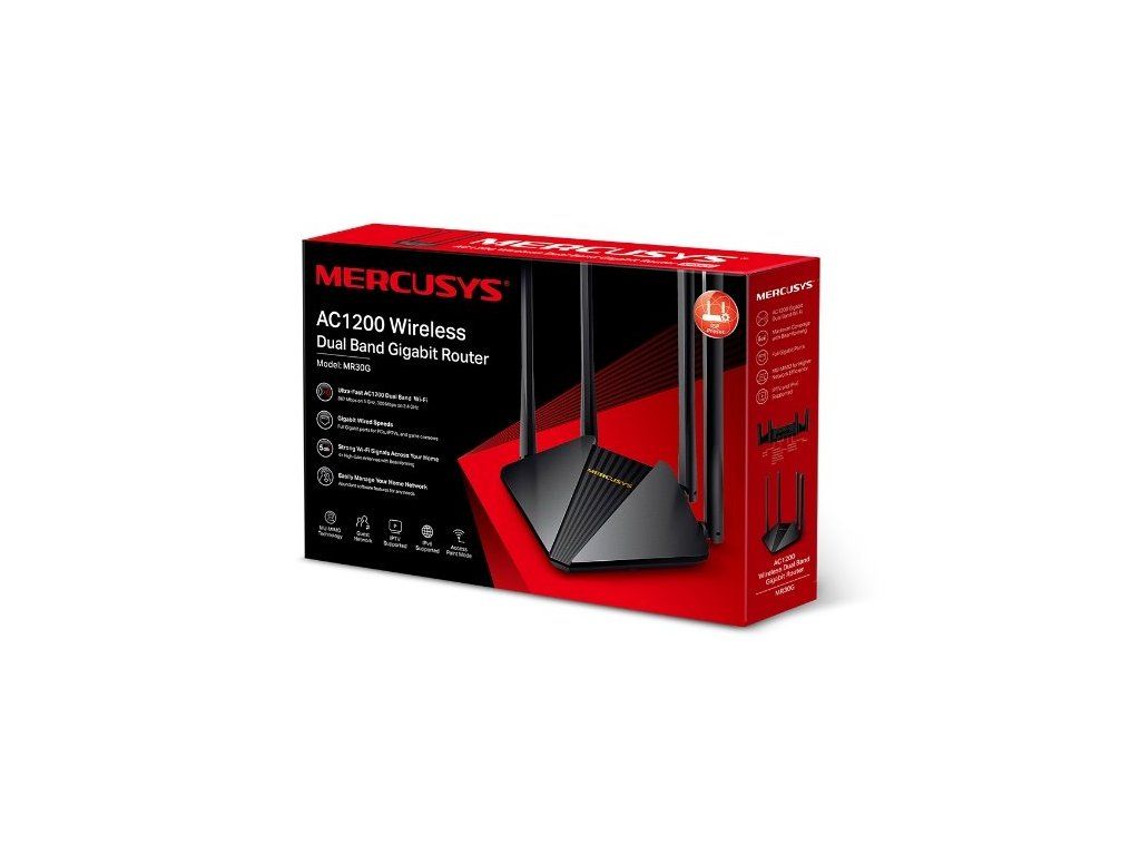 - Dual-band router Mercusys MR30G poskytuje rychlost až 1,2 GB/s při souběžném 2pásmovém připojení