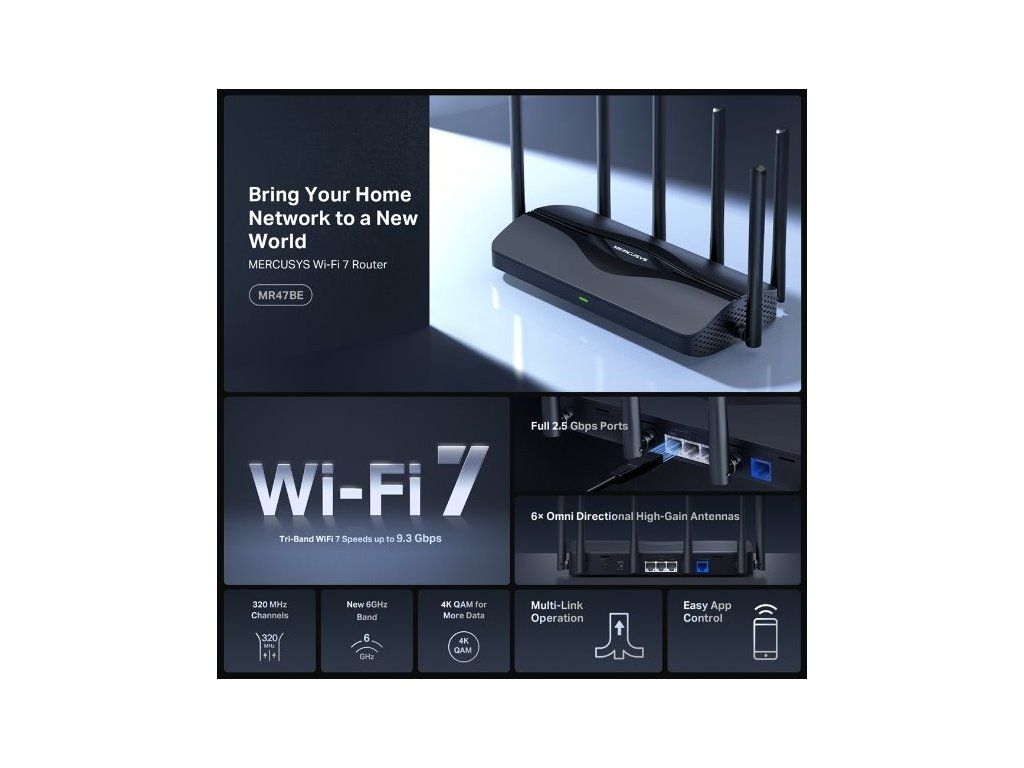 WiFi router TP-Link MERCUSYS MR47BE BE9300 WiFi 7, 3x 2.5GLAN, 1x 2.5GWAN, 2,4/5/6GHz, 52449855