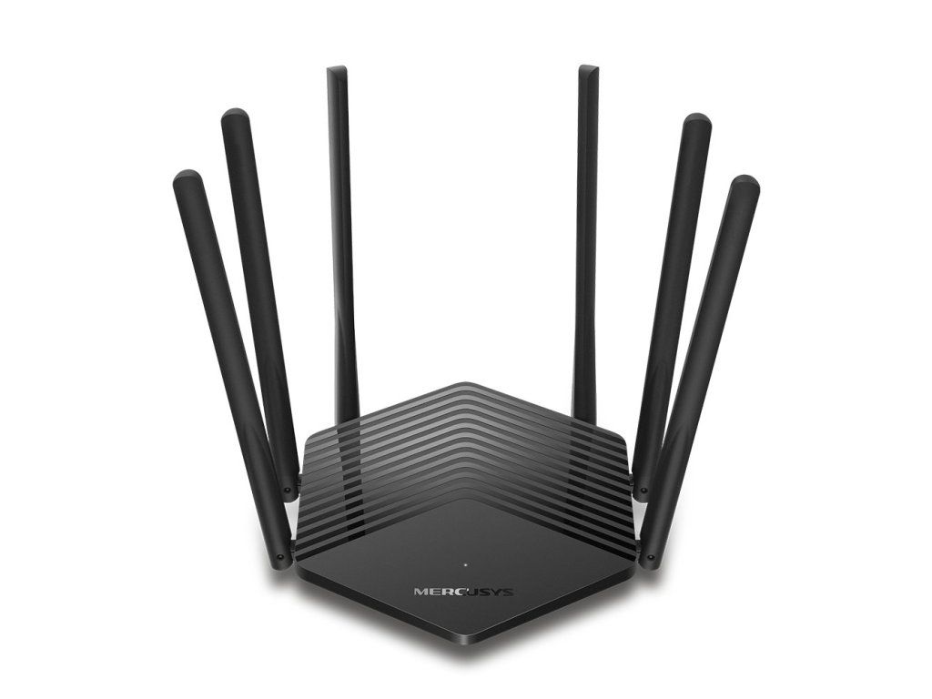 Mercusys MR50G je moderní designový router s hexagonovou základnou s 6 fixními anténami se ziskem 5dBi, dvěmi Gigabitovými LAN a jedním Gigabitovým WAN portem. V bezdrátové části jsou 2 rádia, která jsou obě 3x3 MIMO, podporují MU-MIMO a mají modulační rychlosti 600Mbps (2.4GHz) a 1300Mbps (5GHz). Co do softwarové výbavy, router kromě standardního režimu AP Router podporuje i mód Access Point. Router má plnou podporu nejnovějšího routovacího protokolu IPv6.