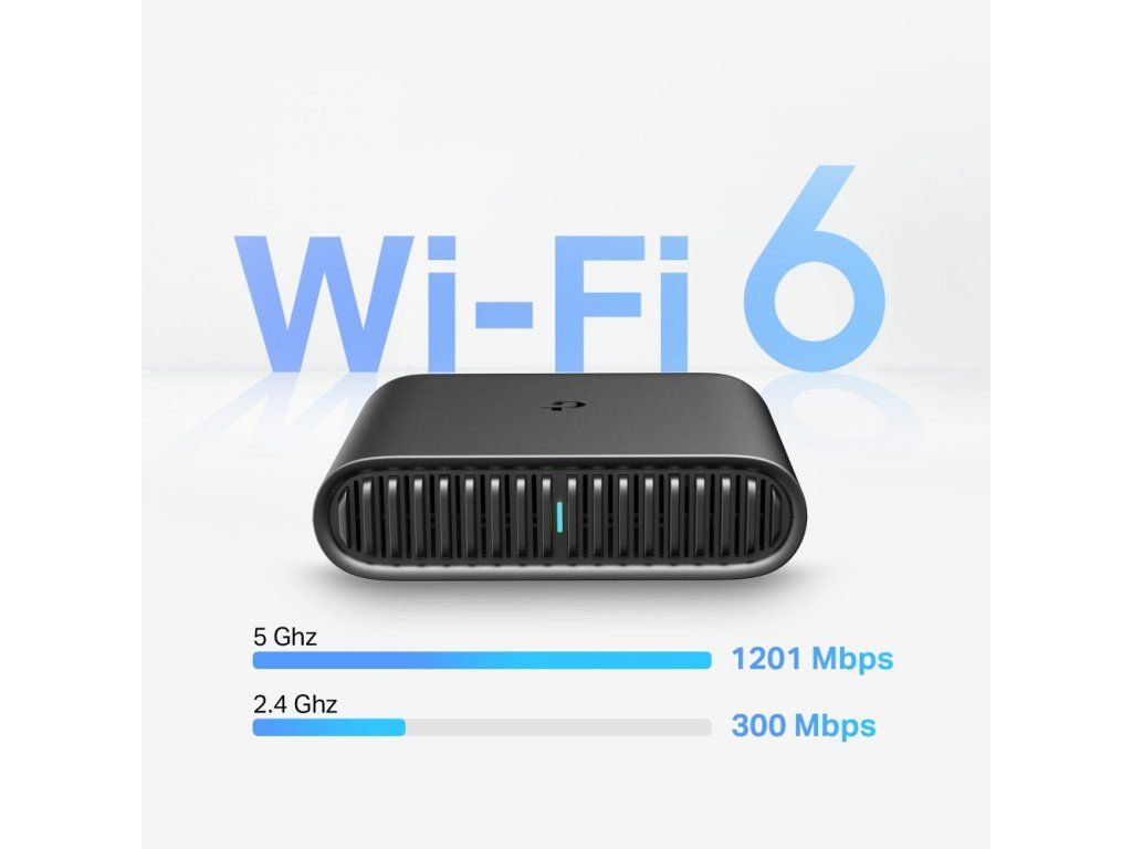 Kompaktní a přenosný Wi-Fi router TL-WR1502X od značky TP-Link je ideální na cesty. Vytvoří kvalitní a spolehlivou dvoupásmovou síť AX1500, kterou využijete i v místech s hustým provozem a velkými nároky na připojení. V pásmu 5 GHz vám router poskytne rychlost až 1 201 Mbps a v pásmu 2,4 GHz až 300 Mbps. To využijete při hraní her nebo při využívání virtuální reality. Těšit se můžete také na plynulé streamování videí v rozlišení 4K a nepřerušované videohovory. Technologii Wi-Fi 6 si zkrátka oblíbíte.