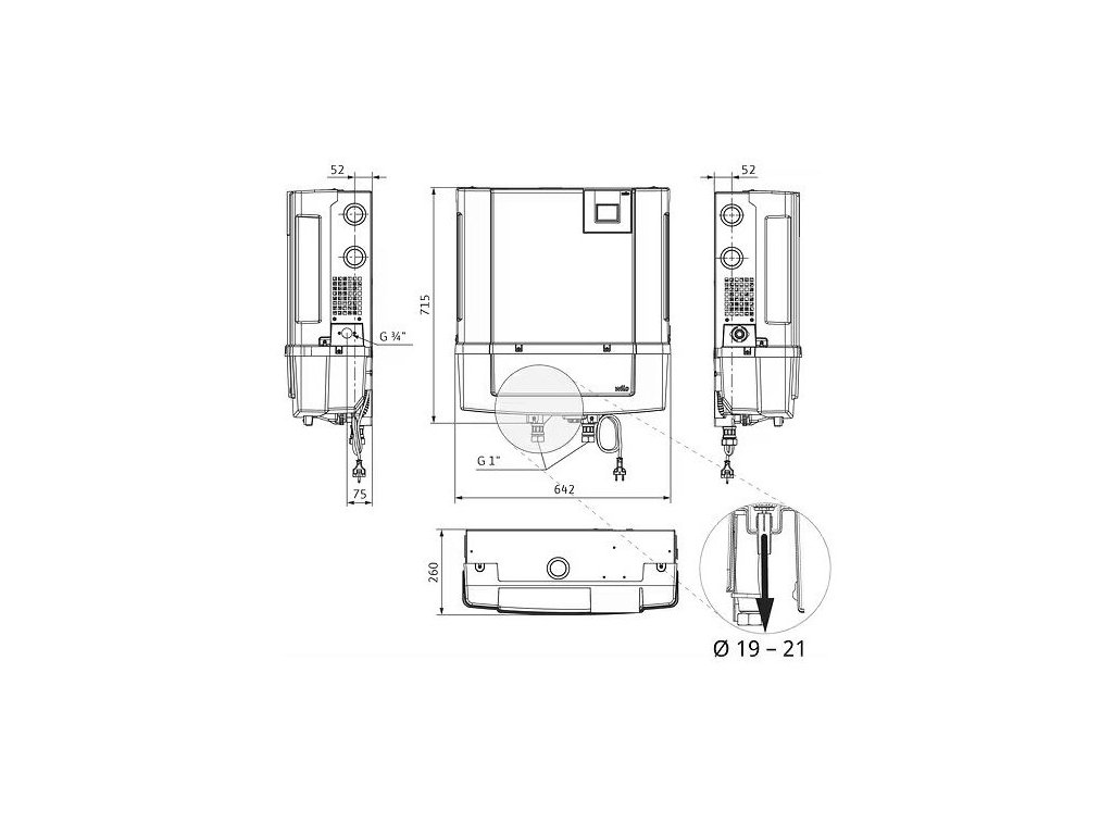 - smontované zařízení připravené k okamžitému zapojení s upevňovacím materiálem