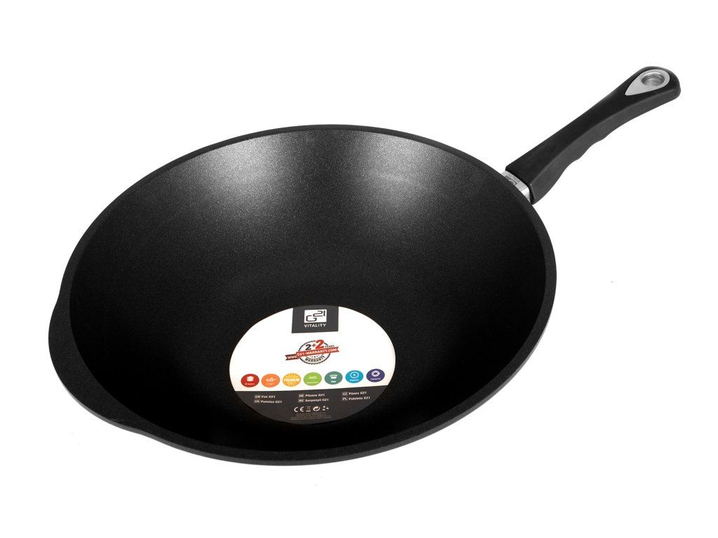 Chcete si připravovat oblíbené speciality a hledáte nejlepší wok pánev? Pak vás určitě zaujme vynikající wok pánev o průměru 36 cm, která je univerzální pro všechny typy ohřevů, teplo vede dokonale rovnoměrně, jídlo se na ní díky speciální nepřilnavé vrstvě LOTAN® nepřipaluje a k přípravě pokrmů nemusíte pánev vytírat olejem.