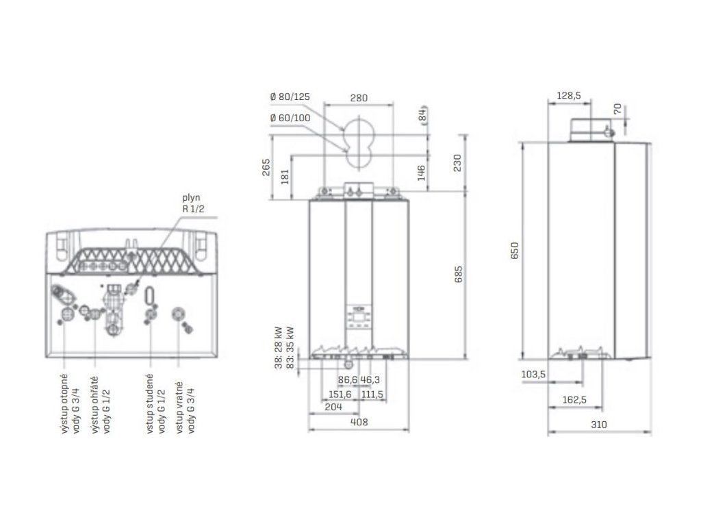 - Příkon: 20 kW (topení a ohřev 24 kW)