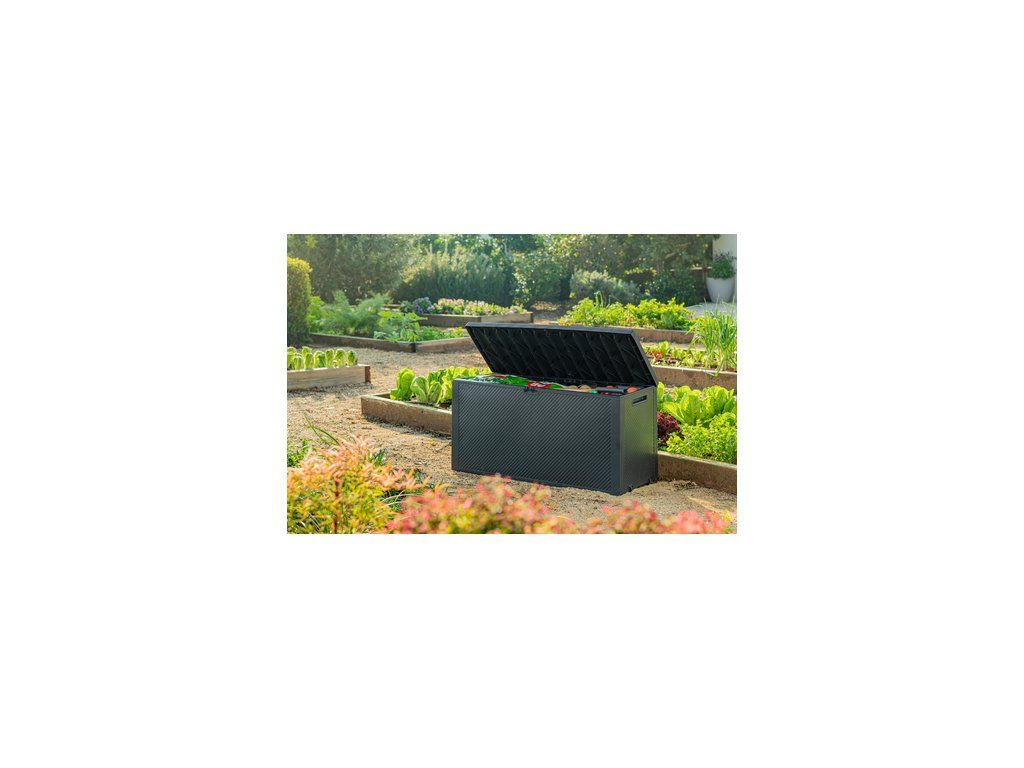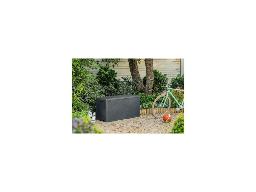 Nemáte dostatek úložného prostoru pro věci na vaší zahradě, terase nebo v pergole? Povaluje se vám nářadí, polštáře ze zahradního nábytku nebo dětské hračky všude kolem? Zahradní box Keter Emily v grafitové barvě vyřeší váš problém. Potěší svým jednoduchým a nenápadným vzhledem, který připomíná dřevěnou či ratanovou truhlu, a díky neutrální barvě se bude hodit téměř do jakéhokoliv exteriéru i interiéru.