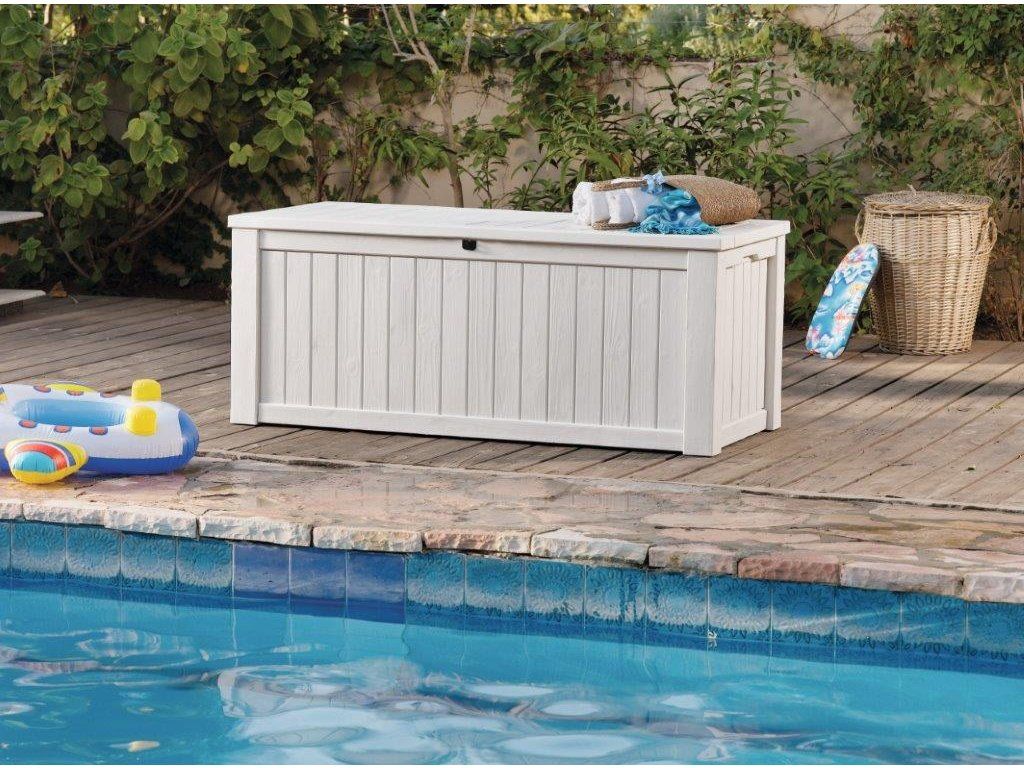 - Praktický úložný box Keter Rockwood nabízí kapacitu 570 l pro přikrývky, polštáře nebo různé zahradní potřeby a náčiní