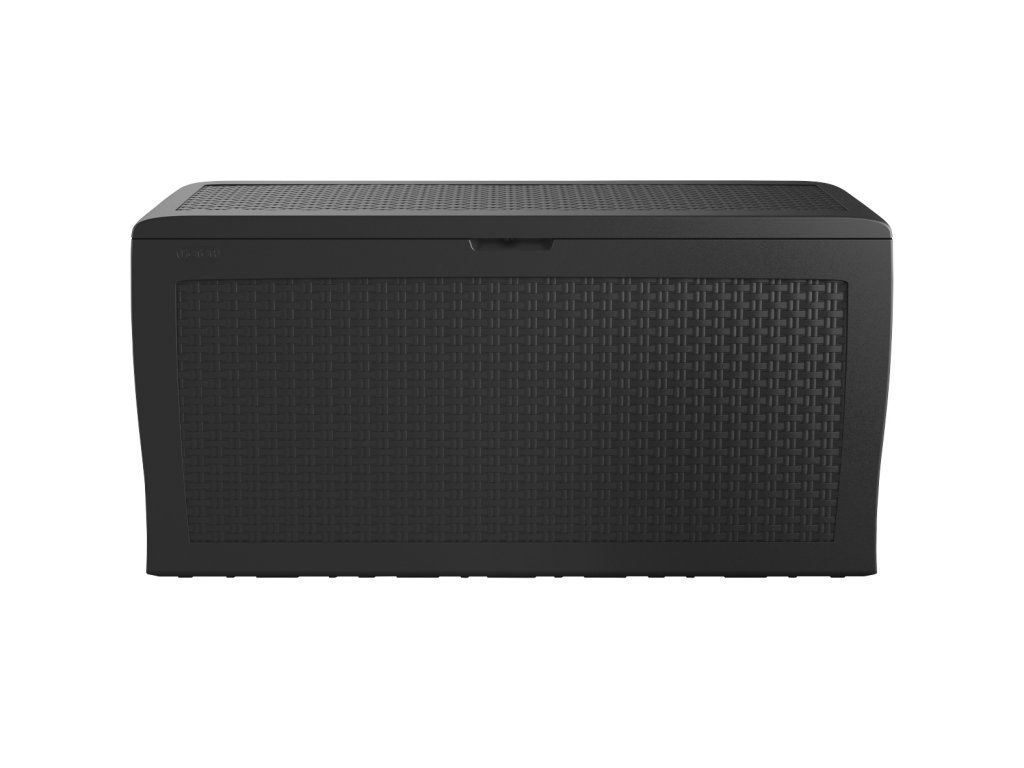 Zahradní box je vyrobený z vysoce kvalitní polypropylenové pryskyřice v moderním designu, který imituje strukturu přírodního ratanu. Skříň je nízká a její dno zvládne unést až 30 kg nákladu a víko vydrží zatížení až 150 kg, takže je ideální i pro skladování podstatně težších věcí. Stěny jsou vyztužené žebrovými segmenty, takže skříň hravě odolá i drsnému zacházení a vandalismu a nevadí ji ani extrémní počasí či UV záření.