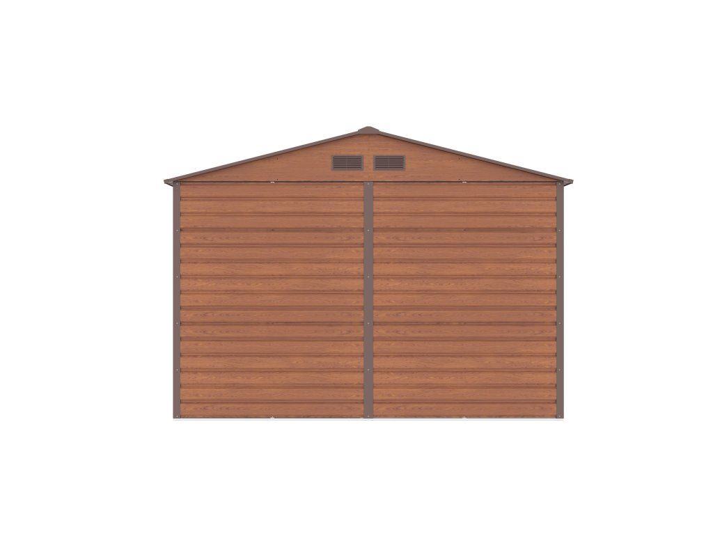 Plechy zahradního domku jsou opatřeny kvalitním nástřikem v dekoru dřeva, proto se nemusíte bát, že plechový domek nenaruší přírodní ráz vaší zahrady. V domku G21 se snoubí tradiční přírodní design s moderními kvalitními materiály. Proto bude domek krášlit vaši zahradu po dlouhá léta, aniž by na něm čas zachoval nějaké stopy.