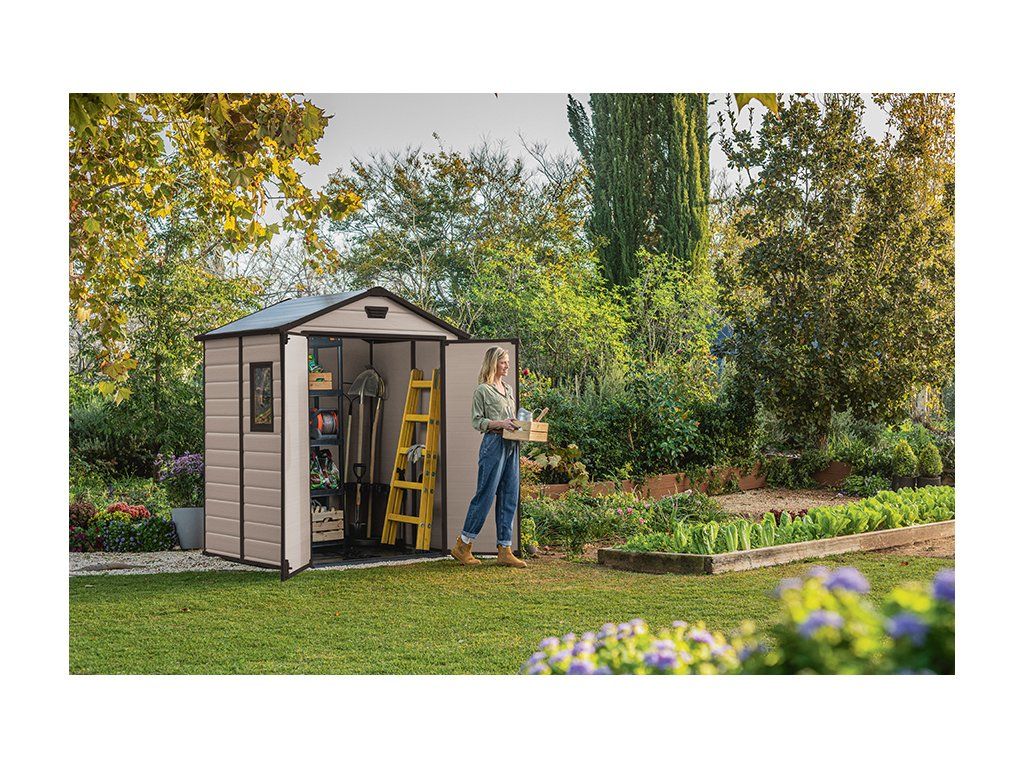Máte zahradní náčiní všude po domě nebo po zahradě a ve vaší garáži již není místo? Zahradní domek Manor 6 x 5 má optimální velikost a je velice snadné jej sestavit. Domek je vhodný pro skladování zahradního nářadí, ale také pro uchování sportovního náčiní, bazénové technologie a vybavení, dílenského nářadí i vybavení pro grilování, včetně rozměrnějších plynových grilů.