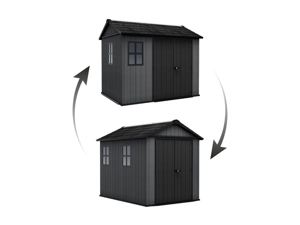Domek sestavíte 2 různými způsoby podle svých vlastních představ. Záleží jen na vás, na jakou stranu umístíte dveře a okna. Do interiéru navíc snadno namontujete skříně, knihovny nebo police na nářadí. Tím rozšíříte úložný prostor zahradního domku.