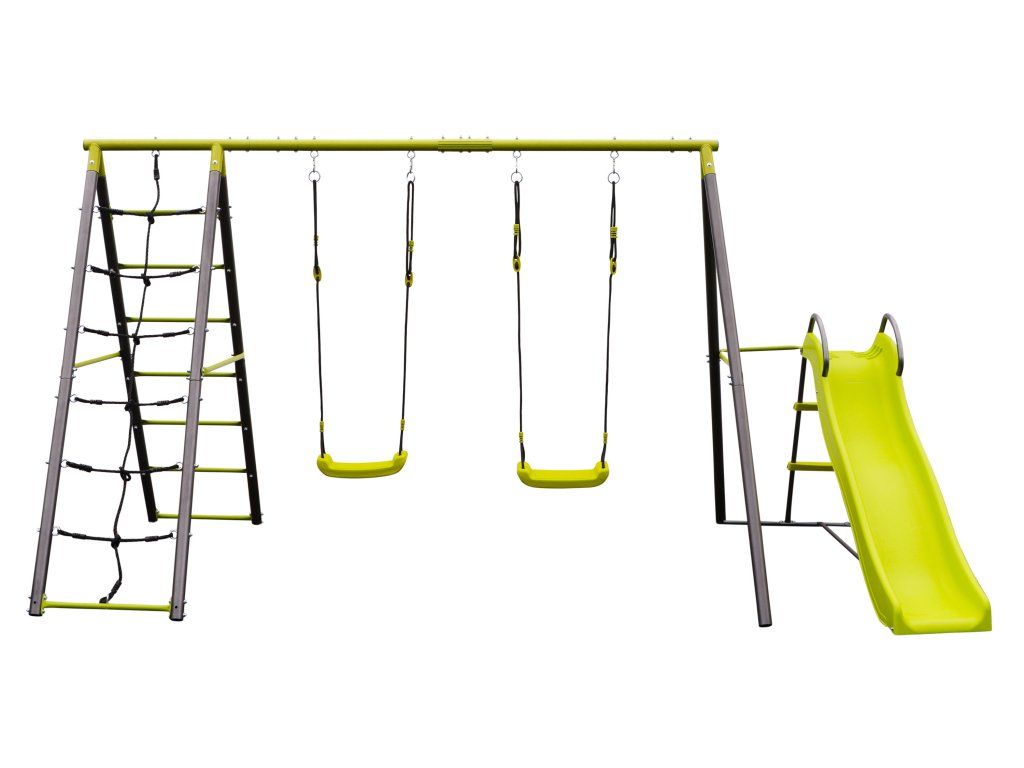 Jak dopřát dětem spoustu skvělé a zároveň bezpečné zábavy? Pořiďte jim zahradní set s houpačkami, lezeckou sítí a skluzavkou. Na houpačkách děti závodí, kdo výš doletí, skluzavka je zabaví a zlepší jim fyzičku a lezecká stěna je motivuje zkusit něco nového.